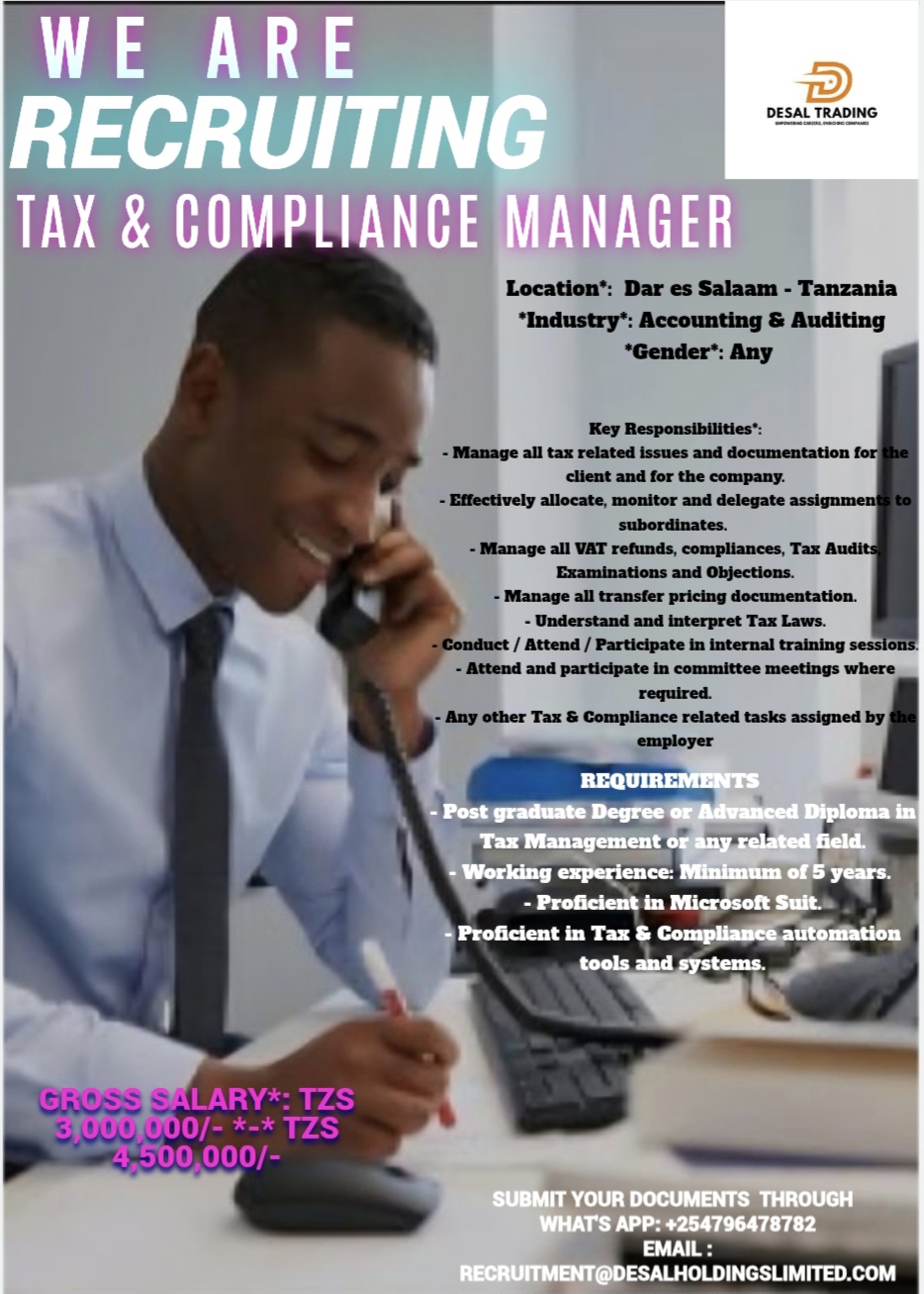 Gross Salary*: TZS 3,000,000/- *-* TZS 4,500,000/-